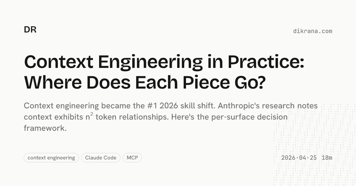 Anthropic, Martin Fowler, and Redmonk all named context engineering the #1 2026 skill shift. But almost every guide on the topic stops at the same place: write a CLAUDE.md, add a skill, sprinkle some MCP, ship it. None of them answer the question that actually blocks teams when they sit down to do this work.